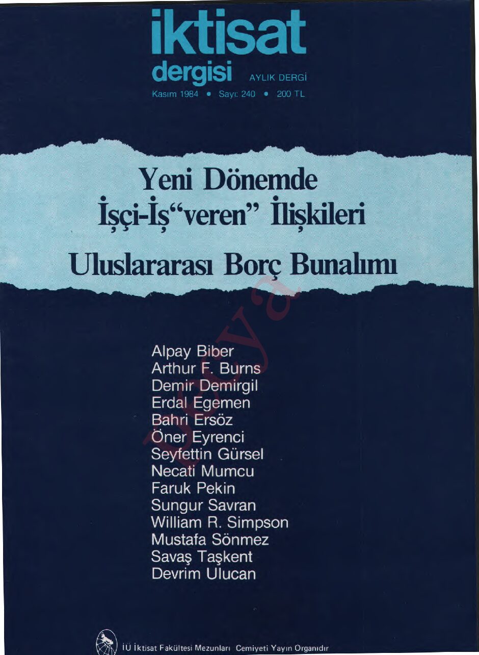 240.sayı- Kasım 1984-Yeni Dönemde İşçi-iş“veren” İlişkileri Uluslararası Borç Bunalım