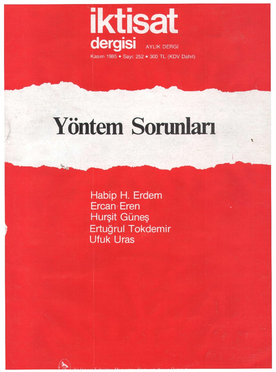İktisat Dergisi 252.sayı- Kasım 1985-Yöntem Sorunları