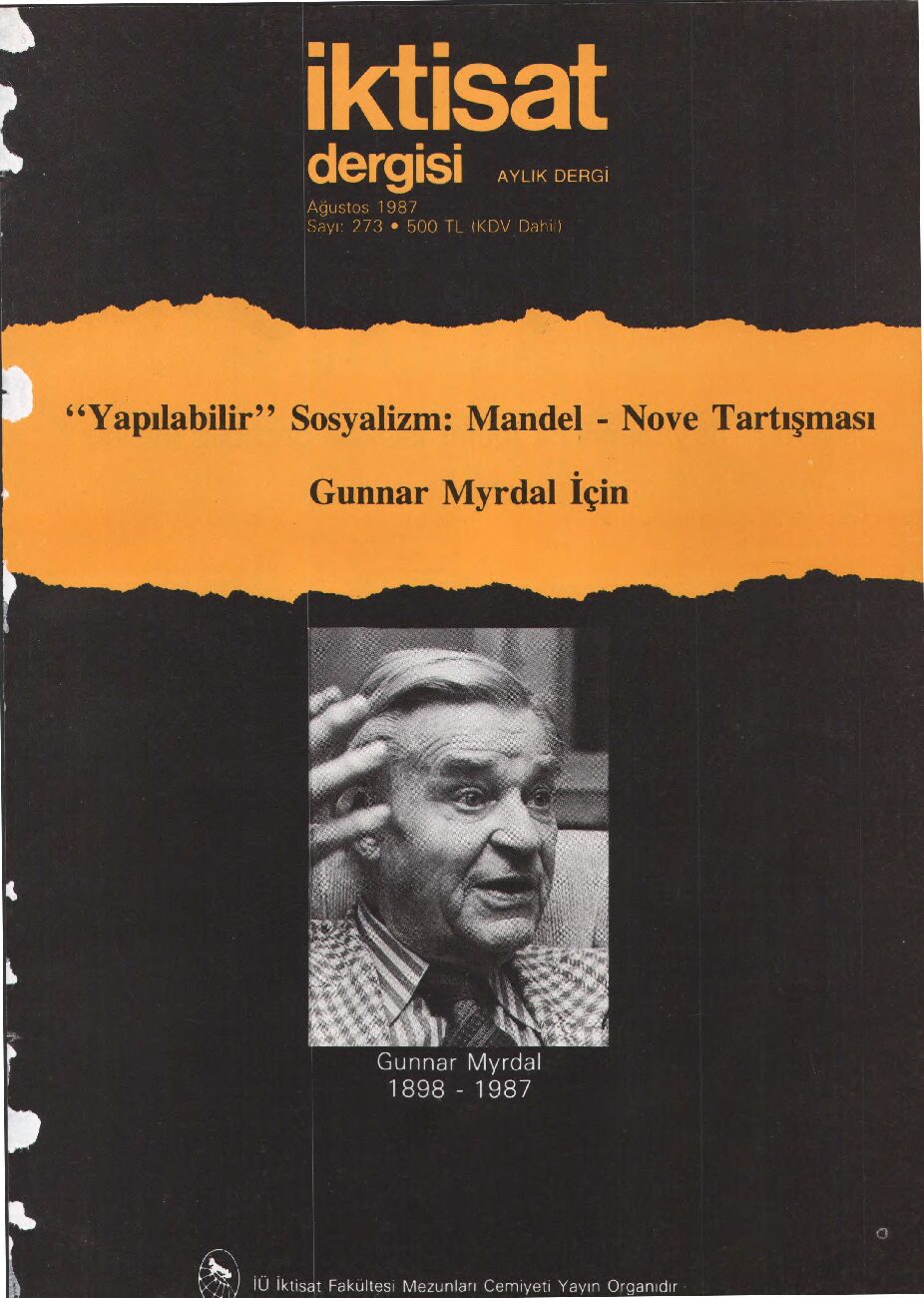 İktisat Dergisi 273.sayı- Ağustos 1987- “Yapılabilir” Sosyalizm: Mandel – Nove Tartışması Gunnar Myrdal İçin