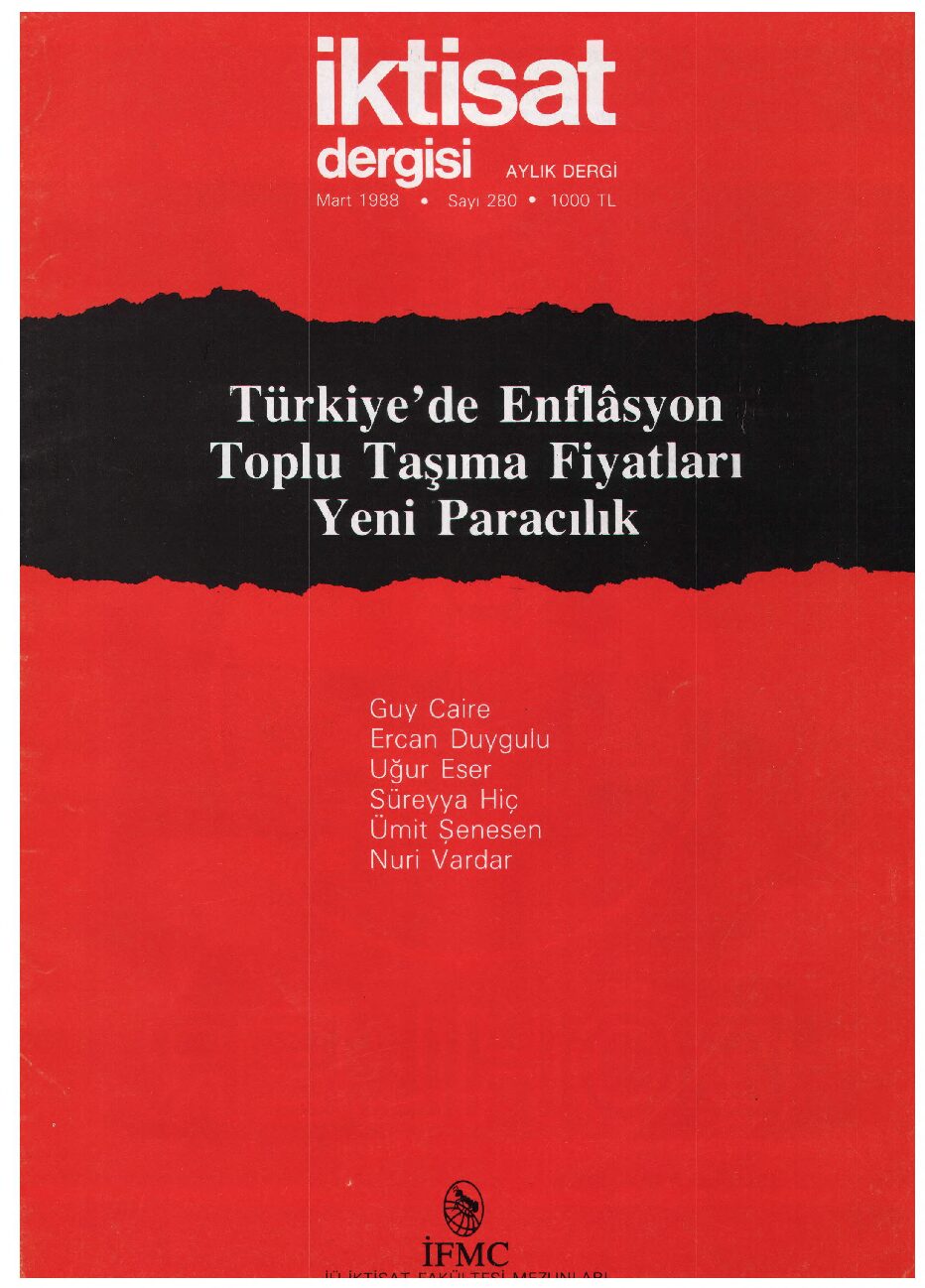 İktisat Dergisi 280.sayı- Mart 1988-Türkiye’de Enflasyon Toplu Taşıma Fiyatları Yeni Paracılık