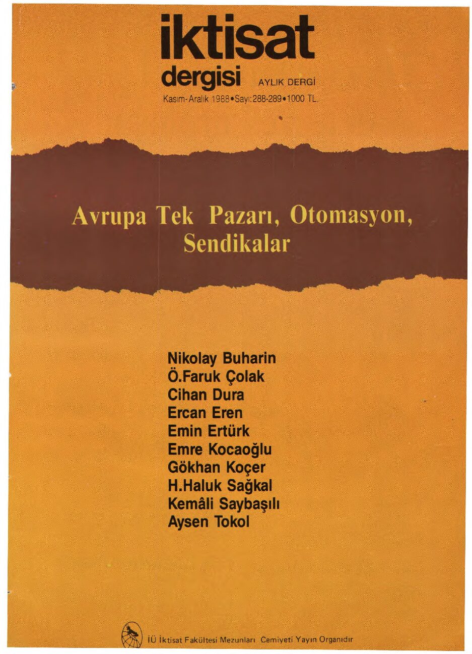 İktisat Dergisi 288.sayı- Kasım 1988- Avrupa Tek Pazarı, Otomasyon, Sendikalar