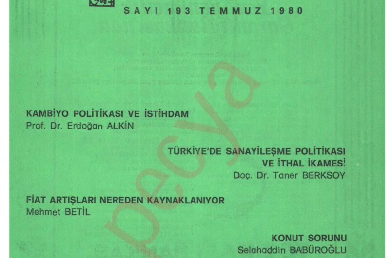 190.Sayı- Nisan 1980-Türkiye’de Sanayileşme Üzerine İÇİNDEKİLER PDF’ye erişmek için tıklayınız