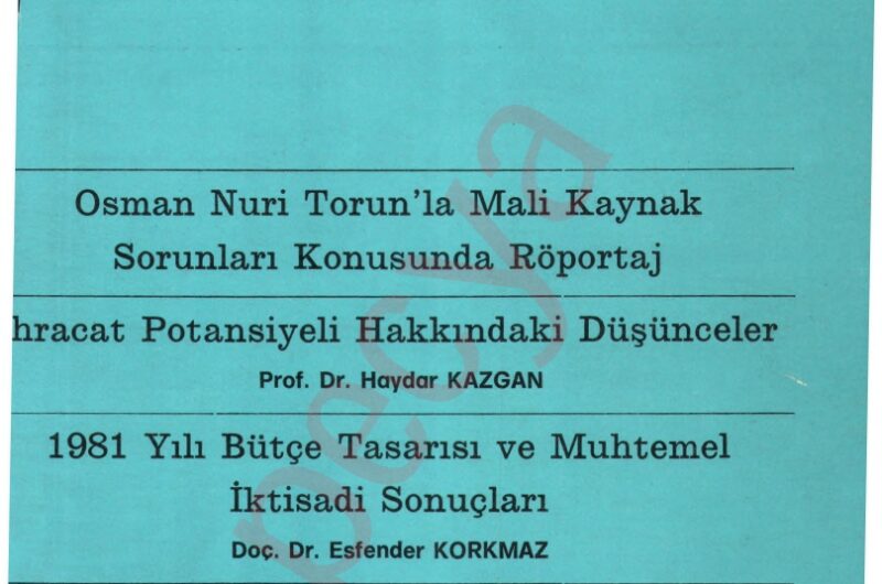İktisat Dergisi 200-201. Sayı- Temmuz/ Ağustos 1981