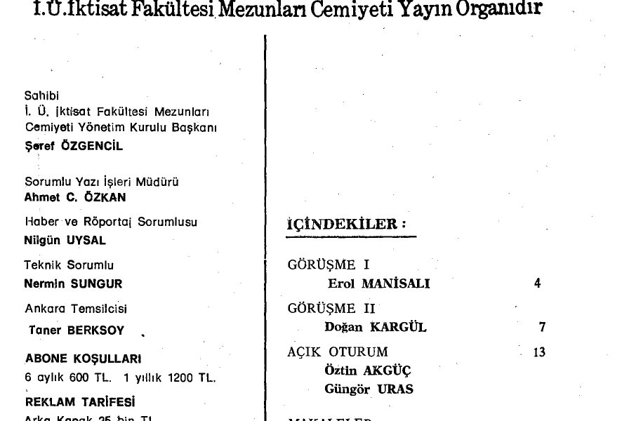 216.sayı- Kasım 1982- Basın ve Ekonomi İÇİNDEKİLER GÖRÜŞME (I) GÖRÜŞME (II) AÇIK OTURUM MAKALELER PDF’ye erişmek için tıklayınız
