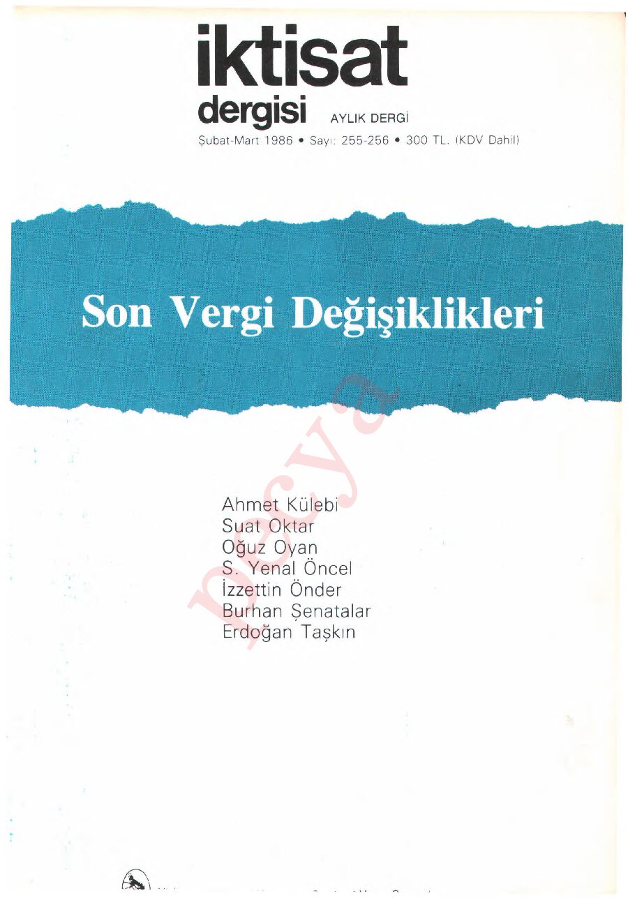 İktisat Dergisi 255-56. sayı- Şubat/Mart 1986 İÇİNDEKİLER Gelir Üzerinden Alınan Vergilerde Değişim Vergi Değişiklikleri Stratejisi 1985 Vergi Paketinin Anlamı Japonya Mucizesinin Ekonomik Temelleri Türk Kamu …