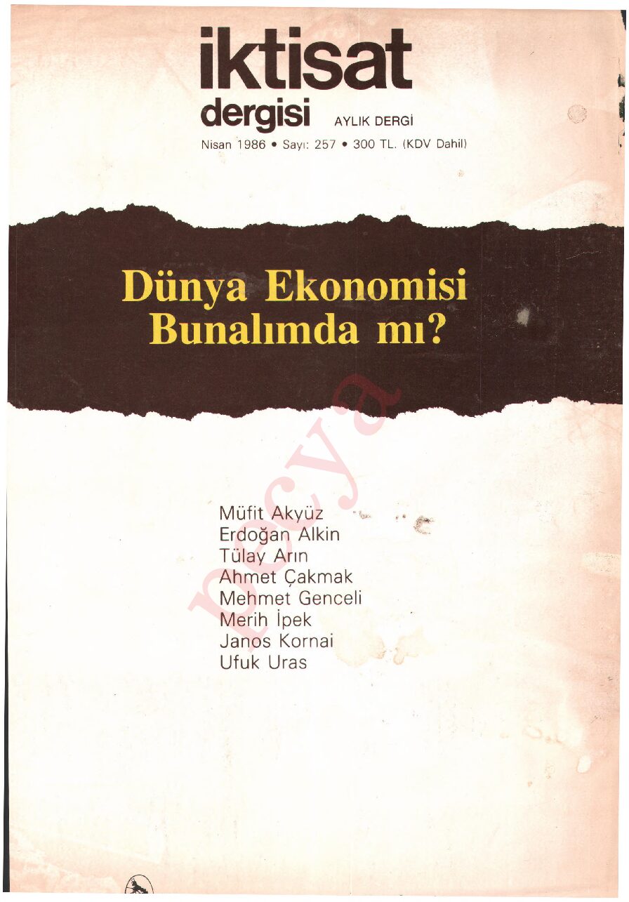 İktisat Dergisi 257.sayı- Nisan 1986-Dünya Ekonomisi Bunalımda mı? İÇİNDEKİLER Dünya Ekonomisi Bunalımdan Çıkıyor Mu? Dünya Krizden Çıkamıyor Mu? Bunalım Dolayısıyla Güncelleşen Uzun Süreli Çevrimler Teorisi …