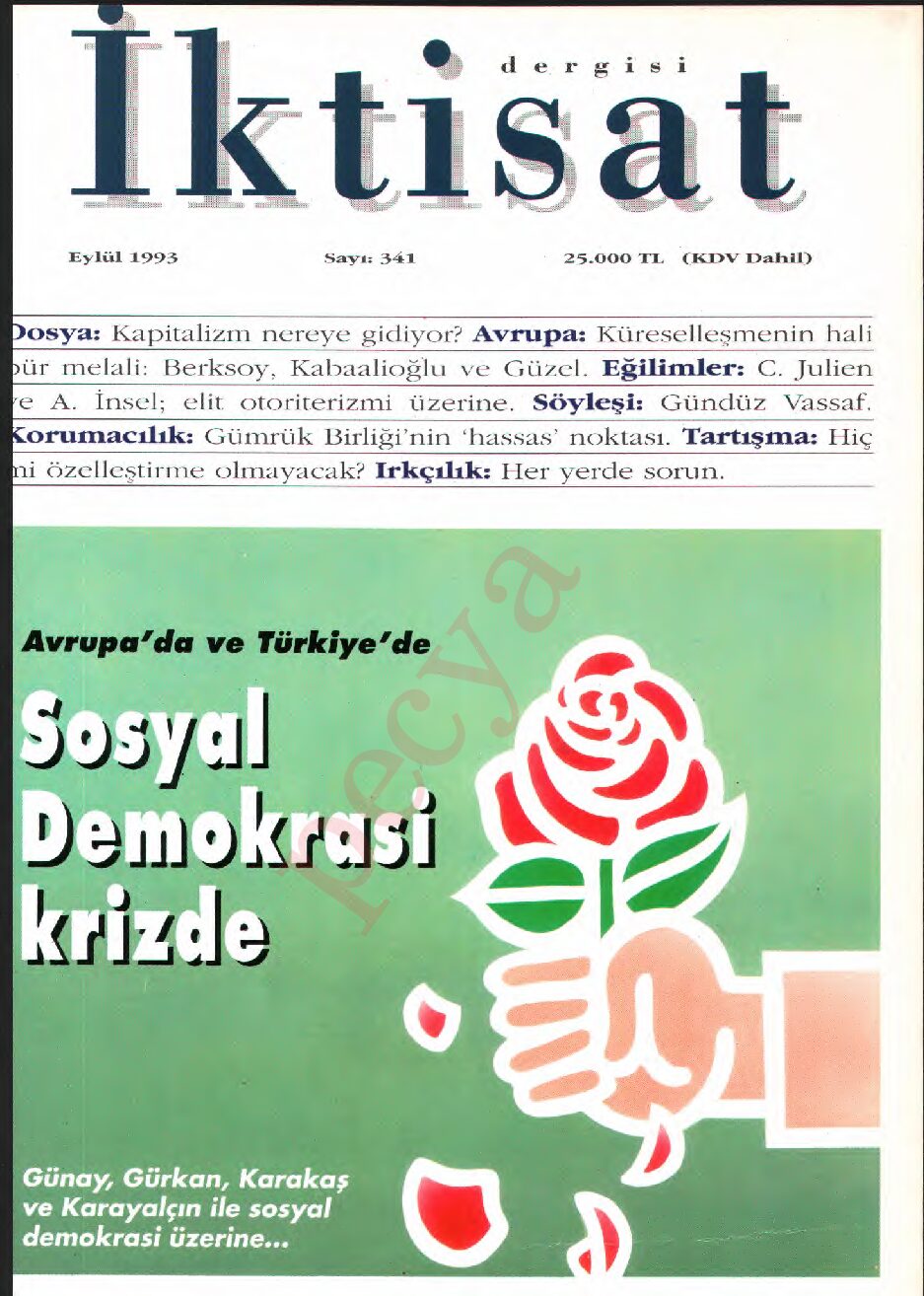 İktisat Dergisi 341.sayı – Eylül 1993-Sosyal Demokrasi Krizde İÇİNDEKİLER Sosyal Demokrasi Krizde Güller Neden Soluyor? Sosyal Demokrasinin Varoluş Bunalımı “Boşa Koydum Dolmuyor” “Kriz, Muhafazakarların İddiasıdır” …