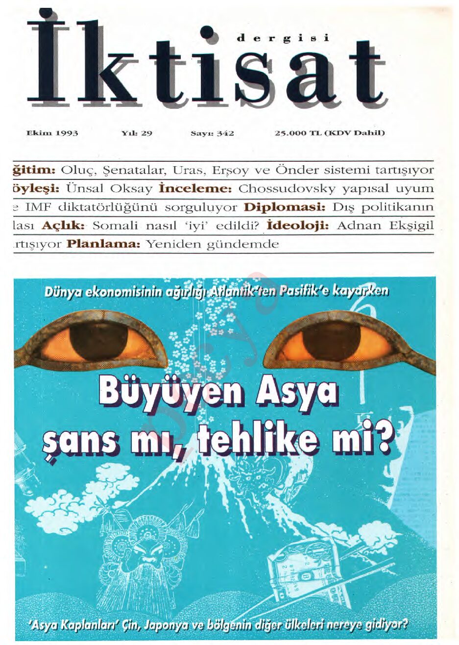 İktisat Dergisi 342.sayı – Ekim 1993-Büyüyen Asya,Şans mı Tehlike mi? İÇİNDEKİLER Üniversiteleri Mahvettiler Söyleşi: Medya Kendi Başına Karar Veremiyor Bu Kadar Ucuzlamış mıydı? Parahistorya: Roma’da …