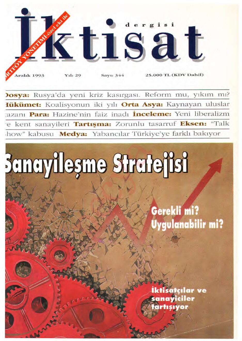 İktisat Dergisi 344.sayı – Aralık 1993-Sanayileşme Stratejisi İÇİNDEKİLER Sanayinin Freni Kaynak Sorunu Kanıtı Açığı Her Sorunun Önüne Geçti Taşeronluk Yaparak Sanayileşemeyiz Kapitalizme Düşmanlıktan, Kapitalizme Hayranlığa …