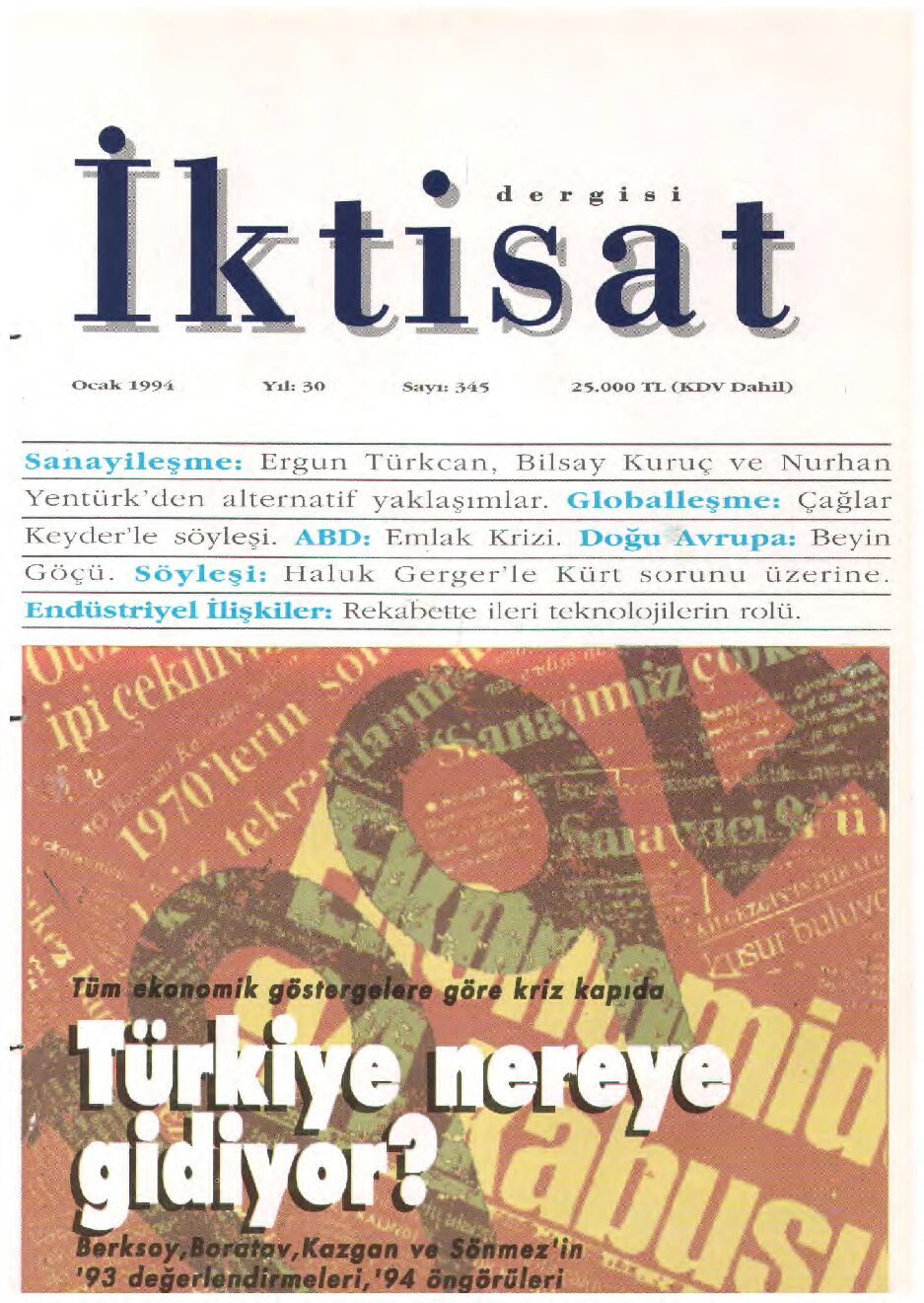 İktisat Dergisi 345.sayı – Ocak 1994-Türkiye Nereye Gidiyor? İÇİNDEKİLER Devleti Küçültme Süreci Avanta Mekanizmasına Dönüştü Mali Kriz 90’lı Yıllarda Da Sürecek 1994 Ve 95 Durgunluk …
