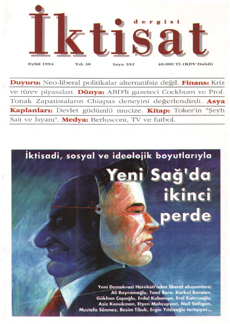 İktisat Dergisi 352.sayı – Eylül 1994-İktisadi, Sosyal ve İdeolojik Boyutlarıyla Yeni Sağ’da İkinci Perde İÇİNDEKİLER Tıkanma Ve Yeni Oluşumlar İnsan Eli Değmeden Yeni Demokrasi Ydh, …