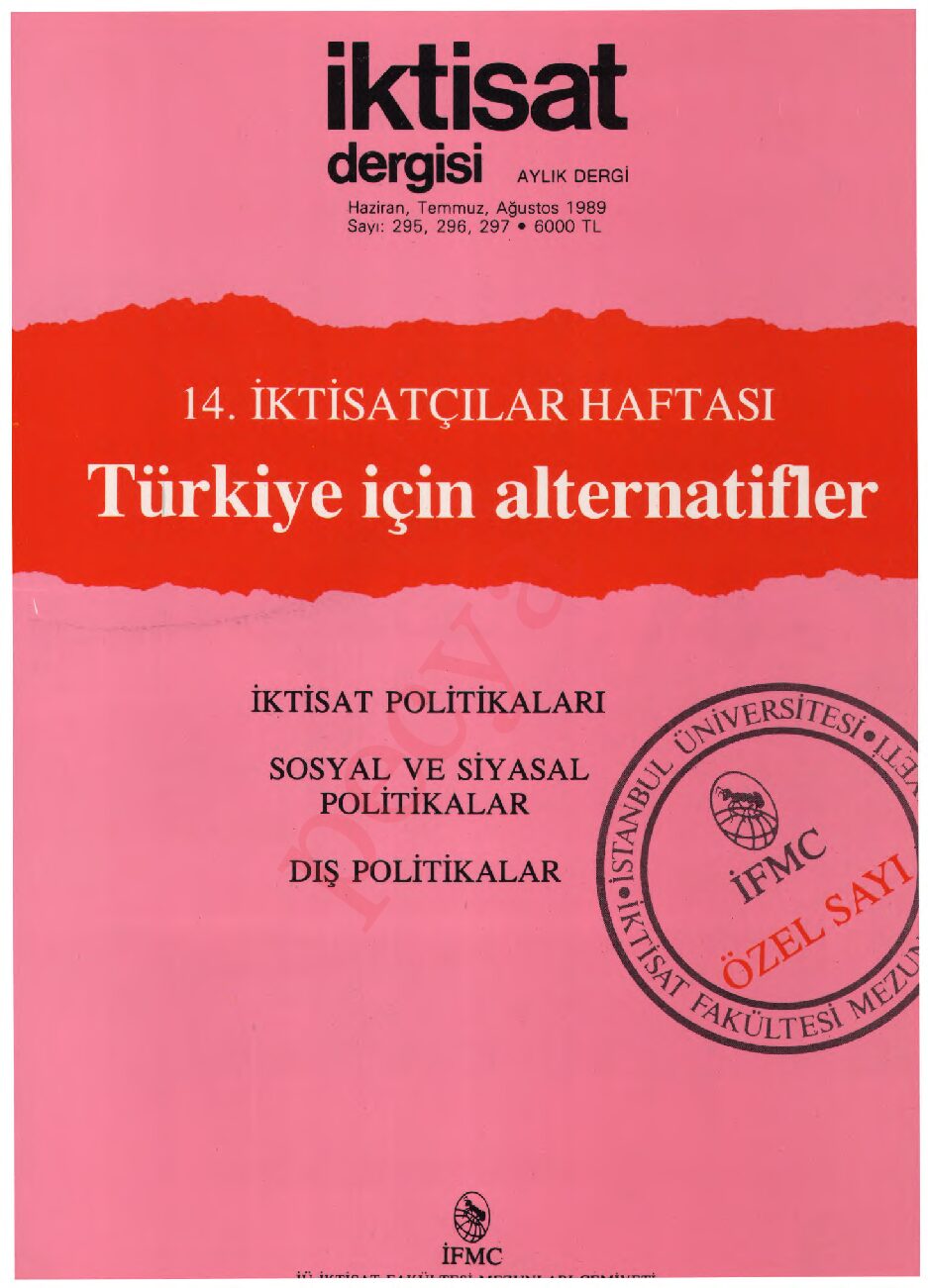 İktisat Dergisi 295.sayı- Haziran 1989- 14. İKTISATÇILAR HAFTASI Türkiye İçin Alternatifler İÇİNDEKİLER PDF’ye erişmek için tıklayınız