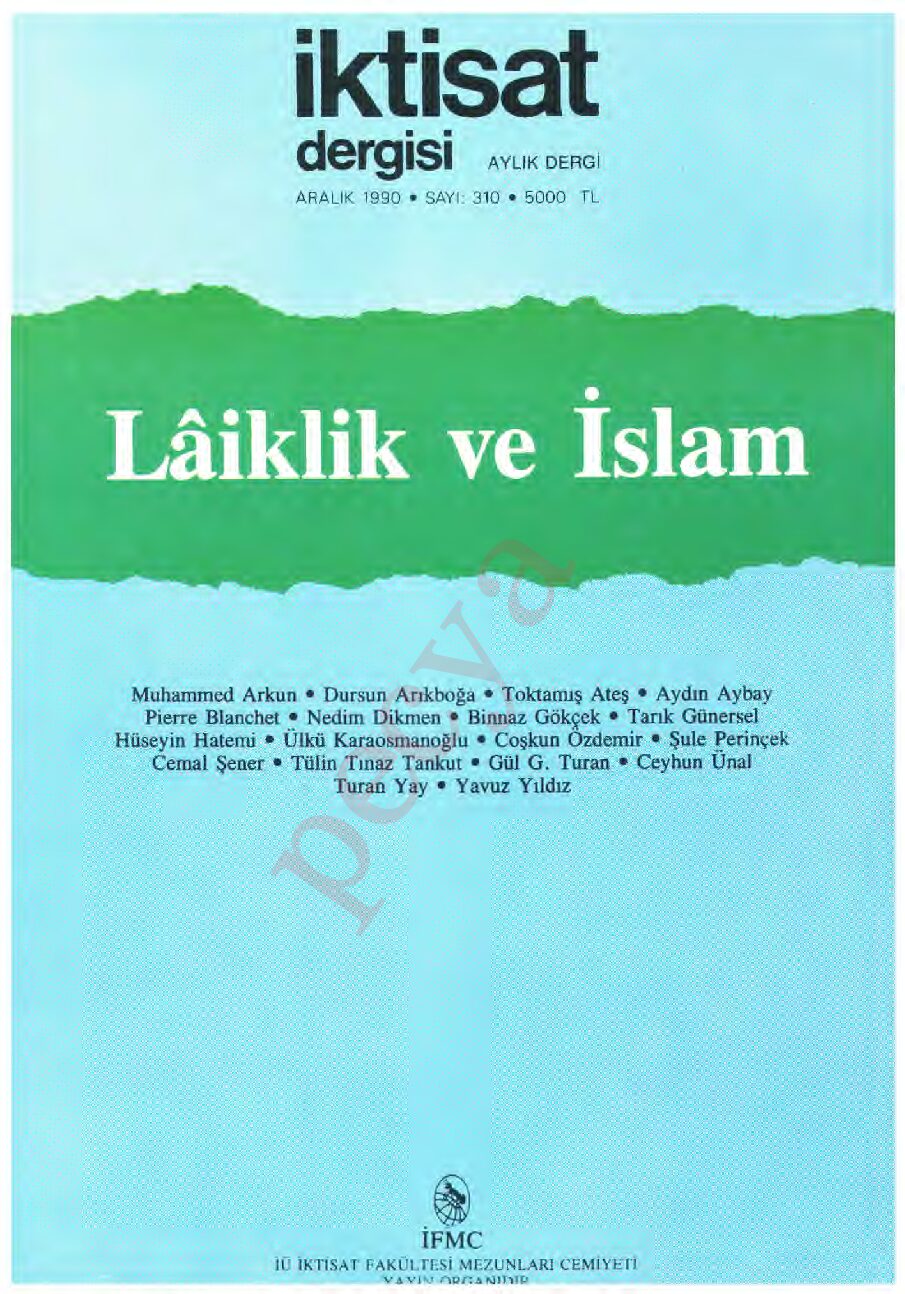 İktisat Dergisi 310.sayı – Aralık 1990- Lâiklik ve İslam İÇİNDEKİLER Fransa’da İslam Laiklik Üzerine Bir Not İrtica Geliyor …(mu) ? Gerçek Din Anlayışı Ve Karşılaştığı …