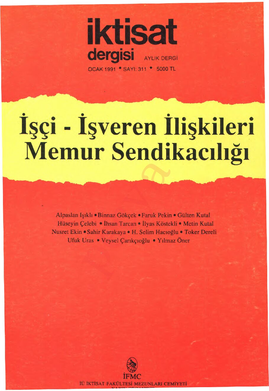 İktisat Dergisi 311.sayı – Ocak 1991- İşçi – İşveren İlişkileri Memur Sendikacılığı İÇİNDEKİLER Türkiye’deki Endüstri İlişkileri Üzerine Toplu Pazarlık Düzeninde Ücretler, Enflasyon Ve Artan Grevler …
