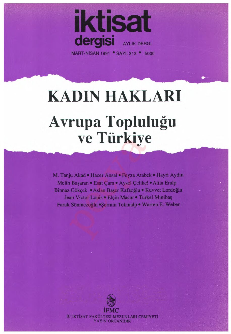 İktisat Dergisi 313.sayı – Mart-Nisan 1991-Kadın Hakları İÇİNDEKİLER Prof. Dr. Aysel Çelikel İle Söyleşi Kadınlara Karşı Kararnamelere Hayır Kadın Kültür Evi İle Söyleşi Demkad’la Söyleşi …