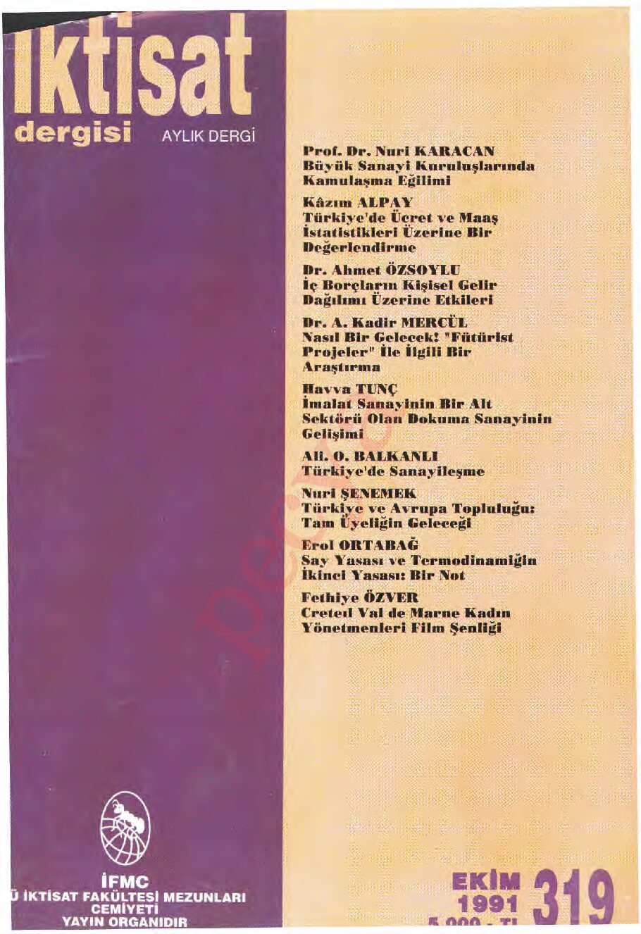 İktisat Dergisi 319.sayı – Ekim 1991