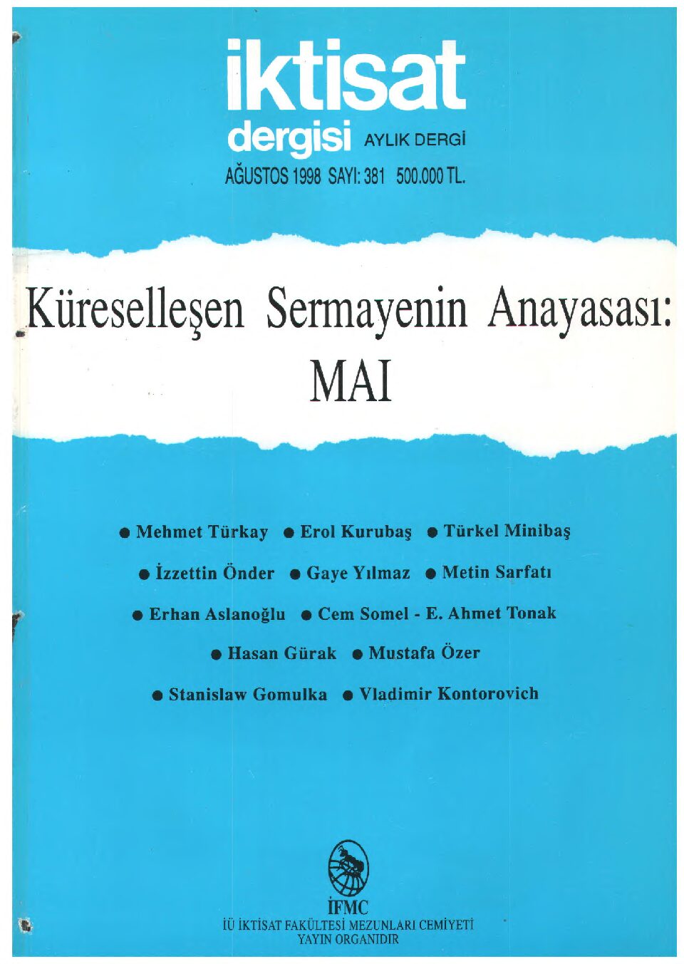 İktisat Dergisi 383.sayı – Ekim 1998-75. Yıl Özel Sayı